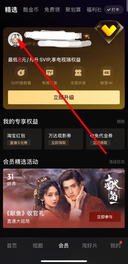 2、在會員頁面,點擊頭像區(qū)域進入會員中心。