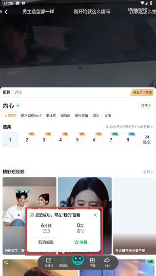 2、加追后,顯示:加追成功,可在我的查看,可根據(jù)此提示跳轉(zhuǎn)回我的頁面中進(jìn)行查看。