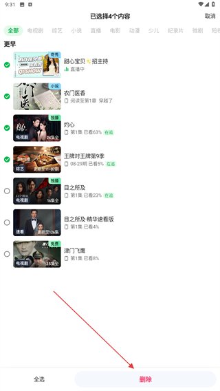 3、勾選需要刪除的內(nèi)容后,再點(diǎn)擊刪除的按鈕即可。