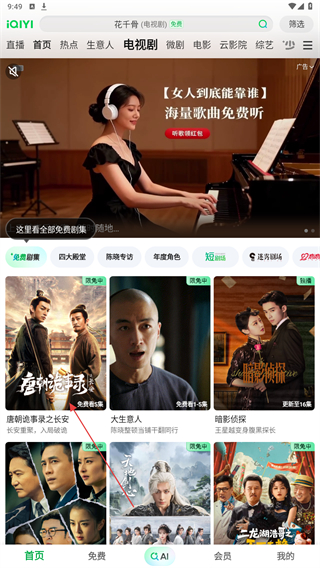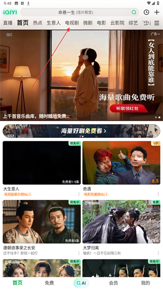 1、啟動愛奇藝應(yīng)用,在首頁點(diǎn)擊電視劇的標(biāo)簽。