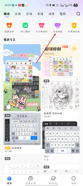 1、打開訊飛輸入法APP,找到并點擊手持彈幕選項。