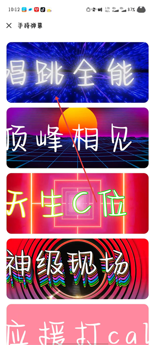 2、在手持彈幕模板列表中,選擇喜歡的模板并點擊進(jìn)入。
