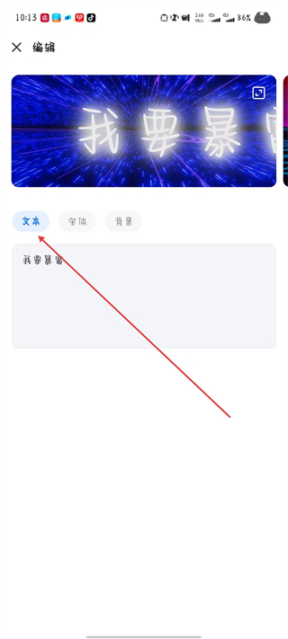 3、在編輯頁面,點擊文本選項,輸入想要的彈幕文字。
