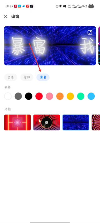 5、點擊背景選項,可設(shè)置背景顏色和動效,完成設(shè)置后即可。