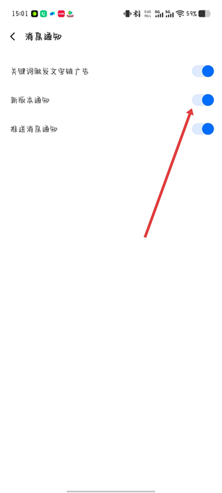 4、找到新版本通知選項,點擊其開關(guān)按鈕。