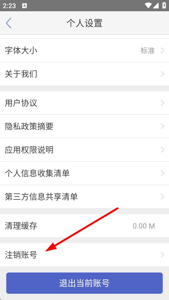 2、在個人設(shè)置界面中,找到并點擊注銷賬號選項。
