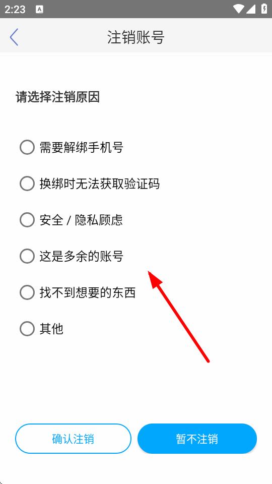 4、選擇注銷原因,然后點擊確認(rèn)注銷,按照提示完成后續(xù)操作,即可注銷賬號。
