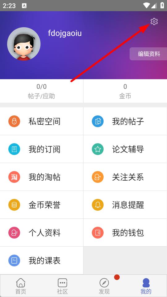 1、在個人頁面右上角,點擊設(shè)置圖標(biāo)齒輪形狀進(jìn)入個人設(shè)置界面。