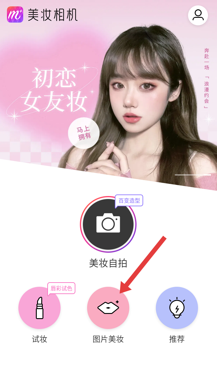 1、打開美妝相機,在首頁點擊圖片美妝按鈕,進入選擇照片界面。