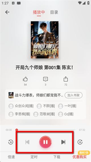 4、在聽書播放界面,即可通過播放控制欄進(jìn)行播放、暫停等操作完成聽書操作。