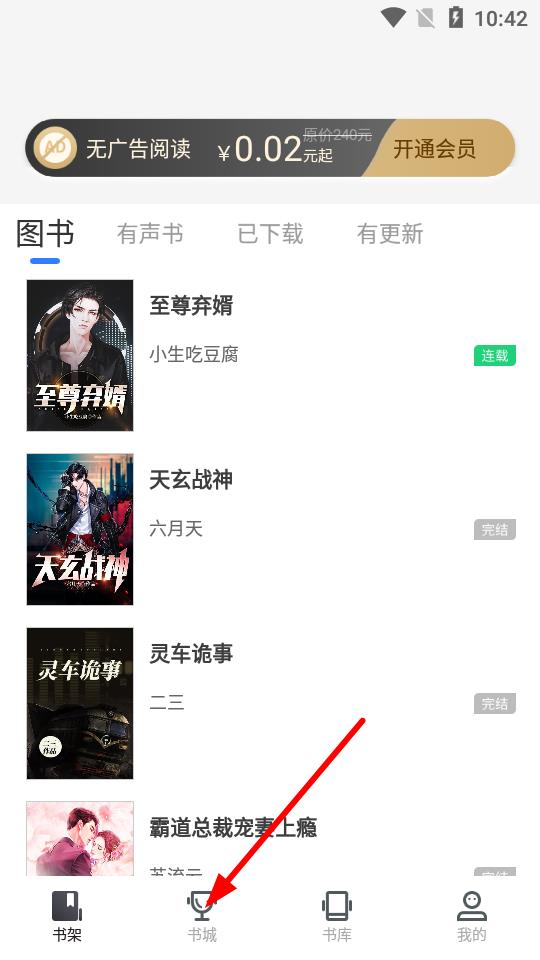 1、打開免費(fèi)追書應(yīng)用,點(diǎn)擊底部導(dǎo)航欄中的書城選項。
