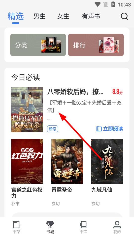 2、在書城頁面,找到想要閱讀的小說,比如八零嬌軟后媽,撩最猛軍官嘎嘎亂殺。