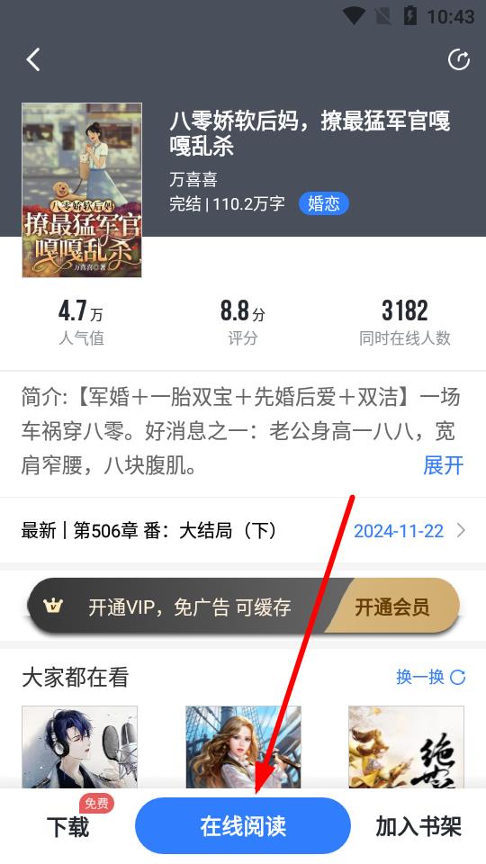 3、進(jìn)入小說詳情頁面后,點(diǎn)擊在線閱讀按鈕。