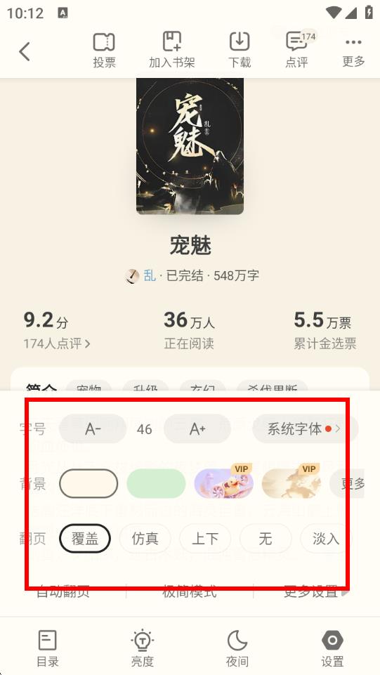 3、在閱讀設置界面里,能看到字號調(diào)節(jié)選項,還能挑選閱讀背景、設置翻頁方式,按自身喜好打造舒適閱讀方式。