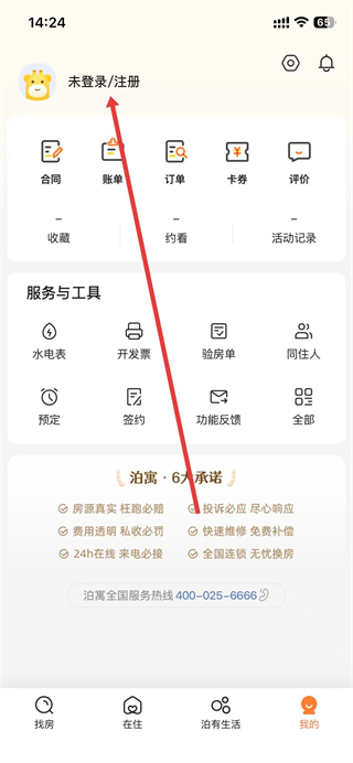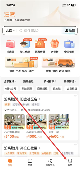 1、在泊寓app首頁點(diǎn)擊我的選項,進(jìn)入個人頁面。