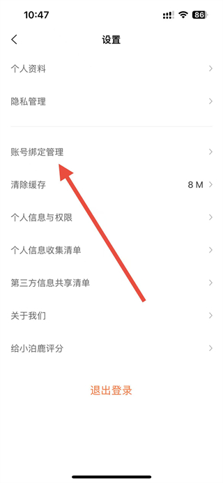 2、進(jìn)入設(shè)置頁面后,點(diǎn)擊賬號綁定管理選項。