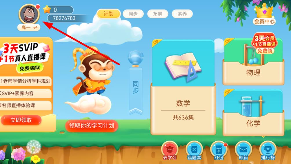 1、打開天天練app進入主界面后,點擊左上角的頭像或賬號區(qū)域,進入個人相關(guān)信息頁面。
