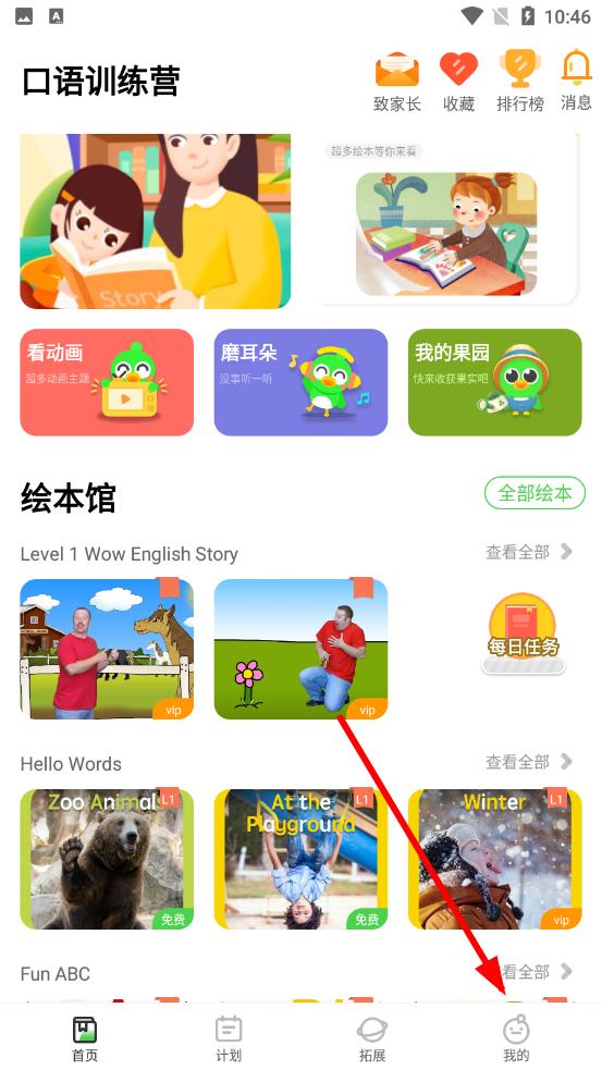 1、打開口語訓練營app,進入首頁后點擊底部導航欄中我的選項。