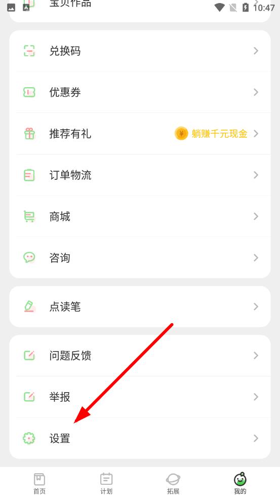 2、在我的頁面里向下滑動找到設置選項,點擊進入設置界面。