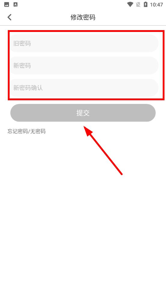 4、在修改密碼頁面依次輸入舊密碼、新密碼、新密碼,確認無誤后點擊提交按鈕完成密碼修改。