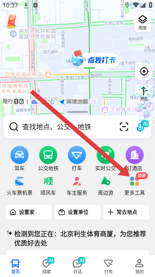 1、打開高德地圖APP首頁,點(diǎn)擊界面中的更多工具圖標(biāo),進(jìn)入功能聚合頁面,該操作是查找離線地圖功能的關(guān)鍵第一步,后續(xù)可在該頁面進(jìn)一步定位離線地圖入口。