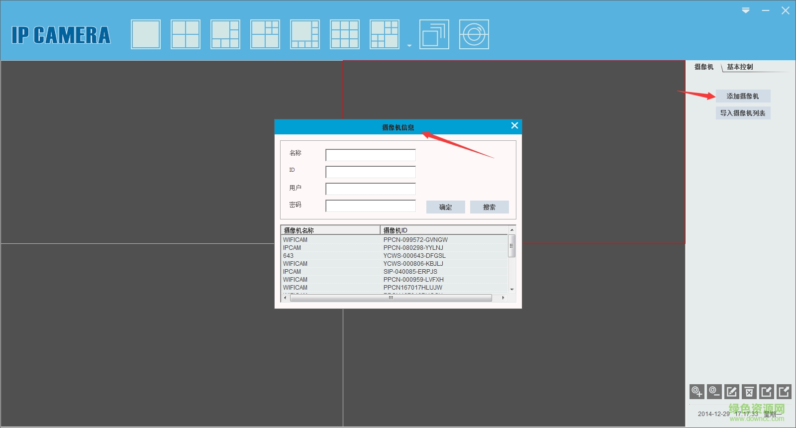 此時(shí)客戶(hù)端會(huì)自動(dòng)搜索局域網(wǎng)內(nèi)的攝像機(jī),點(diǎn)擊搜索到的攝像機(jī)ID輸入用戶(hù)名(默認(rèn)為admin)和密碼(默認(rèn)為admin),攝像機(jī)名稱(chēng)可隨意輸入,點(diǎn)擊確定,即可添加完成。如下圖所示;