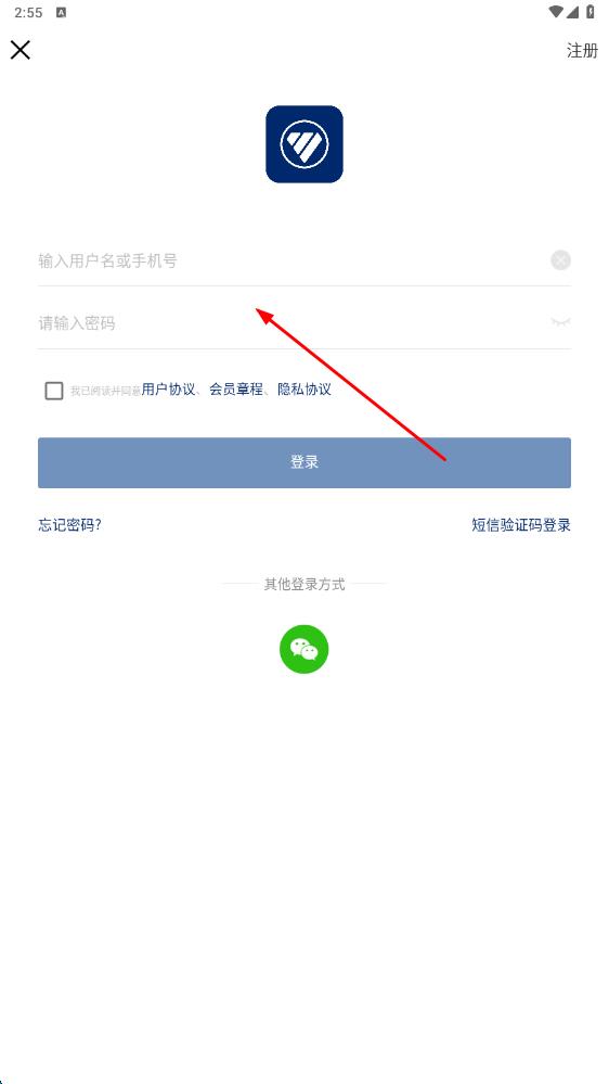2、在登錄界面,依次輸入用戶名或手機(jī)號(hào)、密碼,勾選協(xié)議后點(diǎn)擊“登錄”,也可選擇短信驗(yàn)證碼等其他方式登錄。