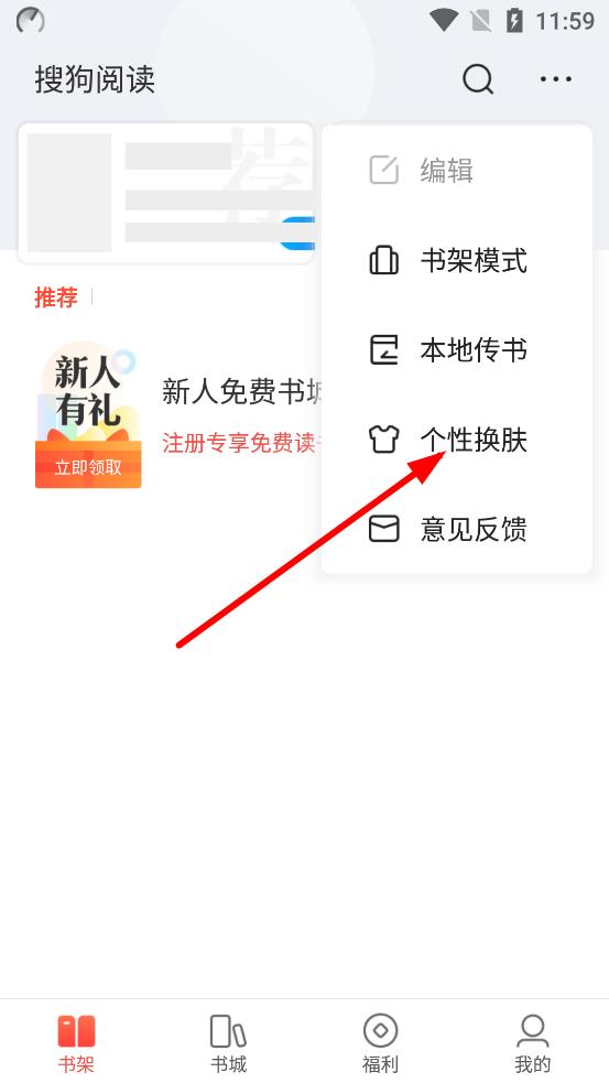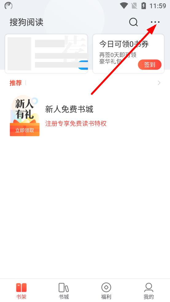 1、打開搜狗閱讀應(yīng)用,進(jìn)入主界面后,點(diǎn)擊右上角的三點(diǎn)圖標(biāo),這個(gè)圖標(biāo)集合了一些常用的功能設(shè)置選項(xiàng),方便用戶快速進(jìn)行相關(guān)操作。