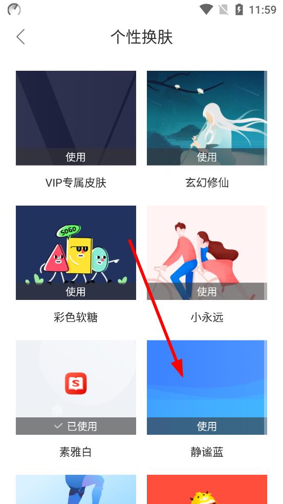 3、進(jìn)入個(gè)性換膚界面后,你會(huì)看到多種不同風(fēng)格的皮膚選項(xiàng),每個(gè)皮膚都有對(duì)應(yīng)的背景圖,然后點(diǎn)擊該皮膚下方的使用按鈕,應(yīng)用的背景圖就會(huì)更換為你所選的樣式。