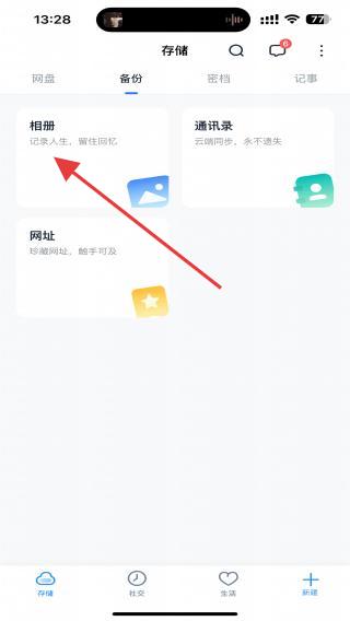 2、在備份頁面內(nèi),點(diǎn)擊相冊的按鈕。