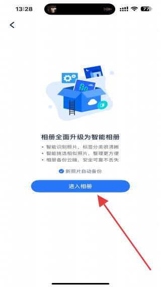 3、勾選新照片自動備份后,再點(diǎn)擊進(jìn)入相冊的按鈕。