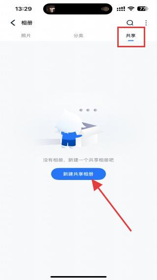 4、進(jìn)入到相冊界面內(nèi),切換共享的標(biāo)簽,再點(diǎn)擊新建共享相冊。