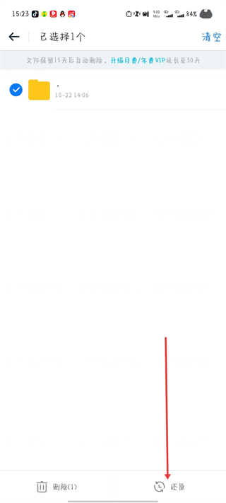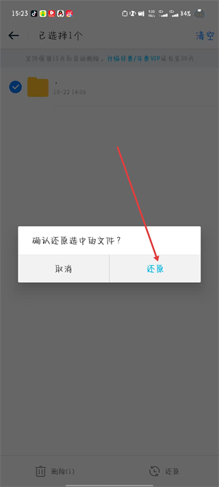 3、選擇要還原的文件,點(diǎn)擊底部的還原選項(xiàng)。