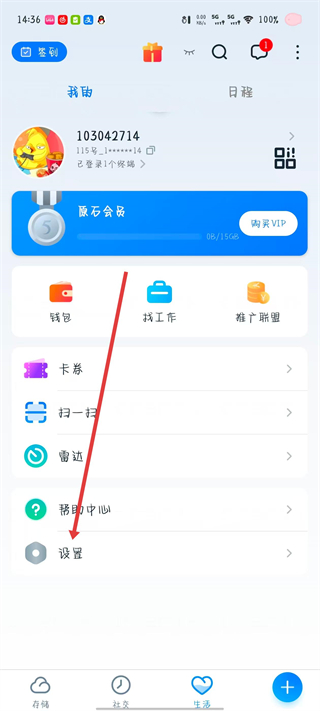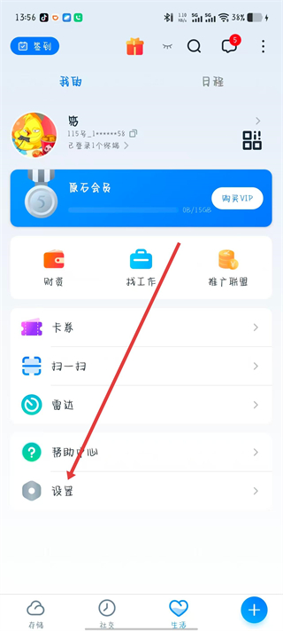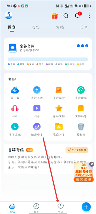 1、打開115網(wǎng)盤APP,點(diǎn)擊生活選項(xiàng)。
