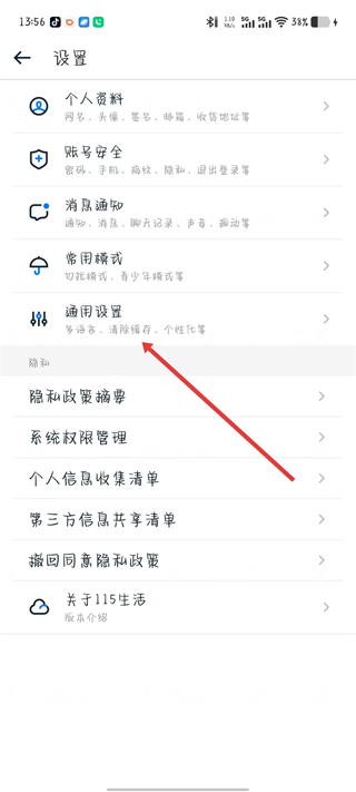 3、在設(shè)置頁面,點(diǎn)擊通用設(shè)置選項(xiàng)。