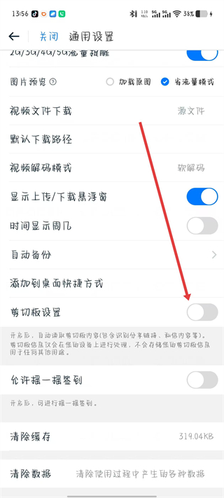 4、找到剪切板設(shè)置選項(xiàng),點(diǎn)擊開關(guān)即可。