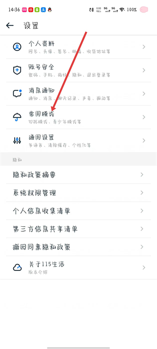 3、找到常用模式,點(diǎn)擊該選項(xiàng)進(jìn)入詳細(xì)設(shè)置頁面。