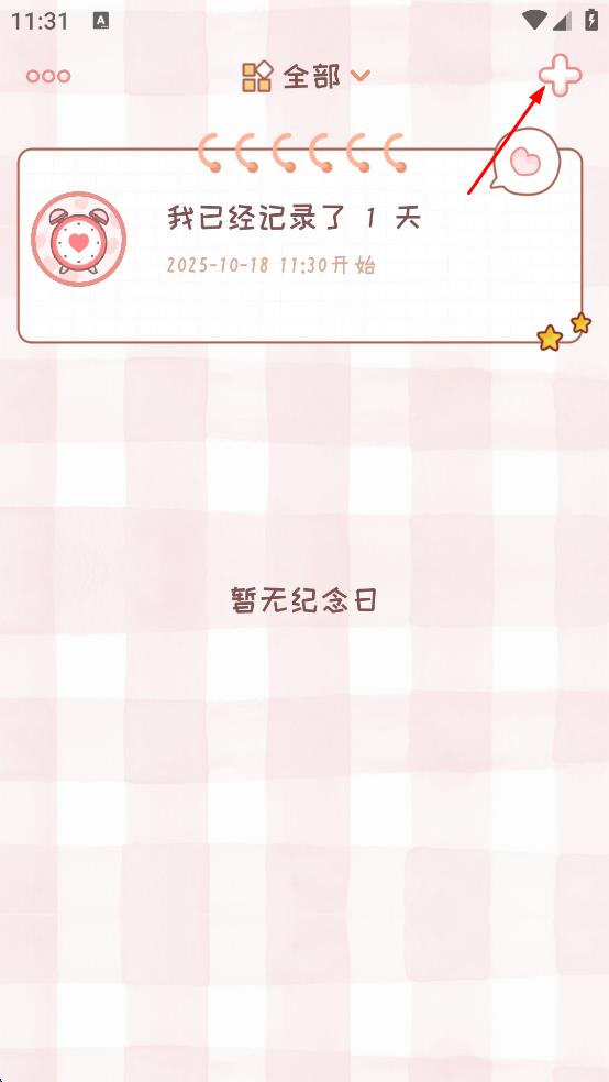 1、打開紀(jì)念日記錄軟件,點擊頁面右上角的加號圖標(biāo),進(jìn)入編輯事件界面。