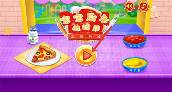 1、打開“寶寶廚房做披薩”游戲,點擊中間的播放按鈕進入游戲。