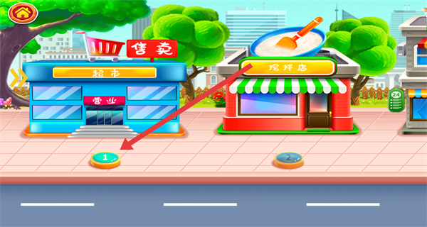 2、在場景選擇界面,點擊標有“1”的超市圖標,進入超市購買材料。