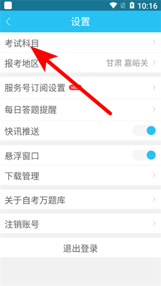 3、在設(shè)置界面,點擊考試科目選項,進入考試科目選擇頁面。