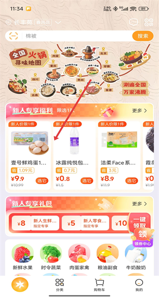 4、選擇好門店后,進入首頁,可進行后續(xù)購物操作。