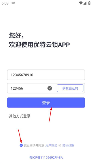 4、勾選我已閱讀并同意用戶協(xié)議和隱私政策,點擊登錄按鈕。