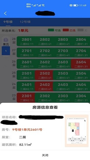 房屋信息:展示房屋的樓號(hào)、單元號(hào)、房號(hào)、面積、朝向、居室等信息。