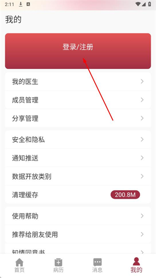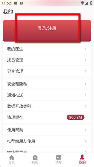 2、在我的頁面中,點(diǎn)擊登錄/注冊按鈕。