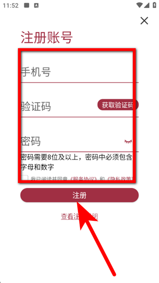 4、依次輸入信息,勾選同意后,點(diǎn)擊注冊按鈕,即可完成注冊。