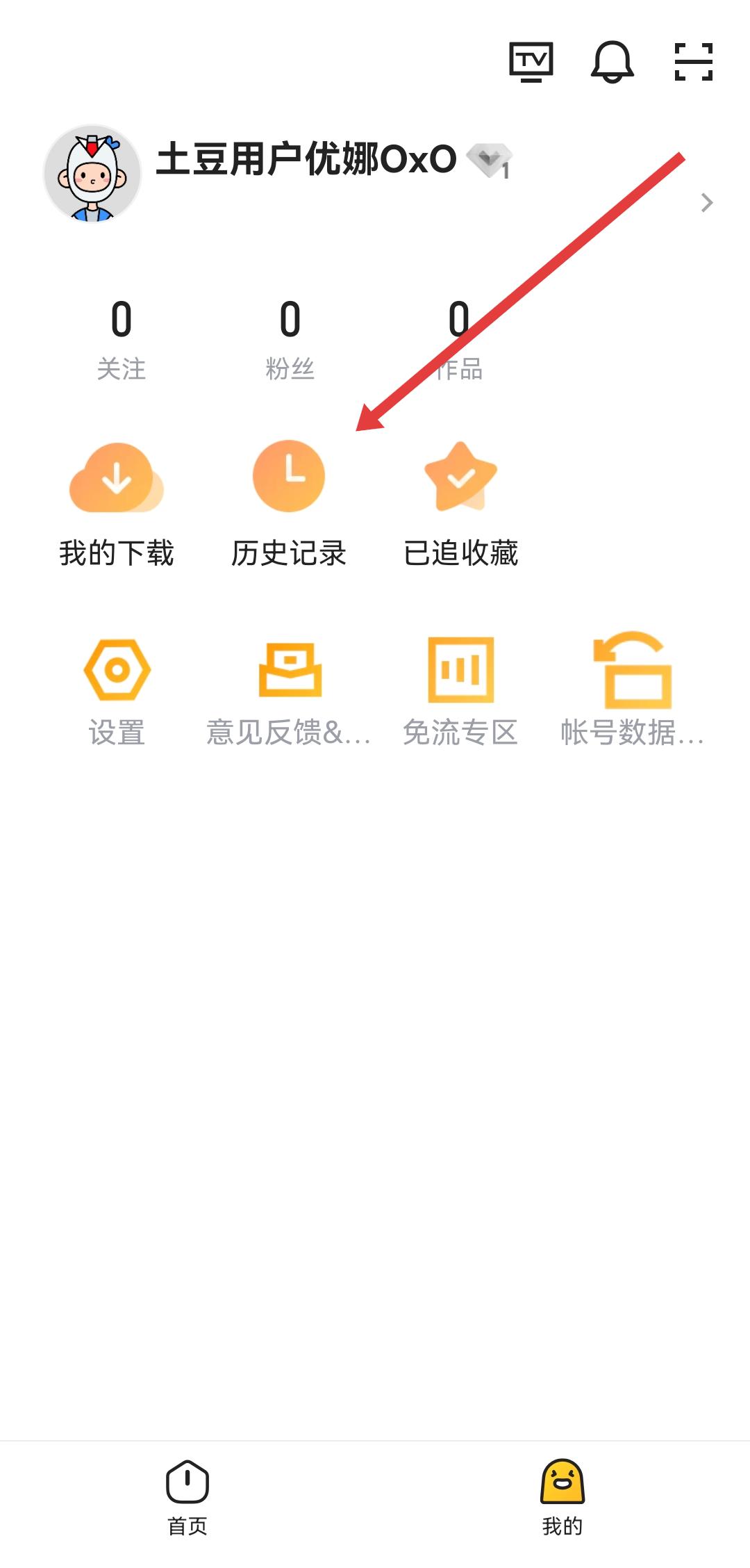 1、打開土豆視頻APP,我們需要點擊右下角我的,進入個人的頁面。