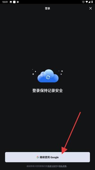4、進(jìn)入到登錄的頁面,點(diǎn)擊下方繼續(xù)使用Google的按鈕即可登錄。
