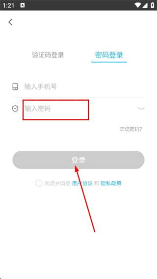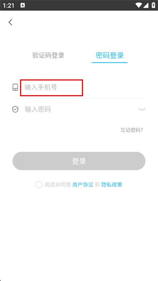 2、在密碼登錄頁(yè)面,輸入需要登錄的手機(jī)號(hào)。