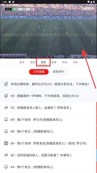 3、進(jìn)入比賽詳情頁后,點(diǎn)擊直播標(biāo)簽,即可觀看該場比賽的直播。